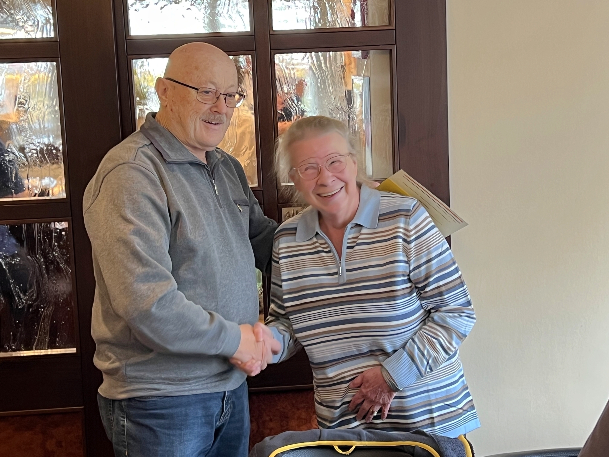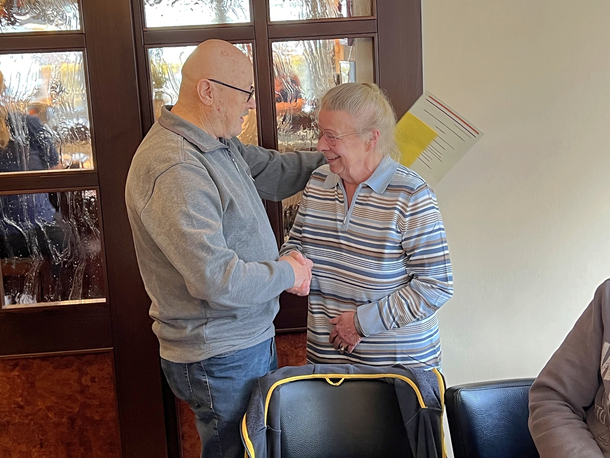 Bild 4+5: Erika Seelhof wird für ihre Verdienste im Verband vom 2. Vorsitzenden Harald Pausch geehrt. Auch der 1. Vorsitzende Ralf Otto erhält für seine Arbeit und Verdienste für den Verband eine Ehrung.