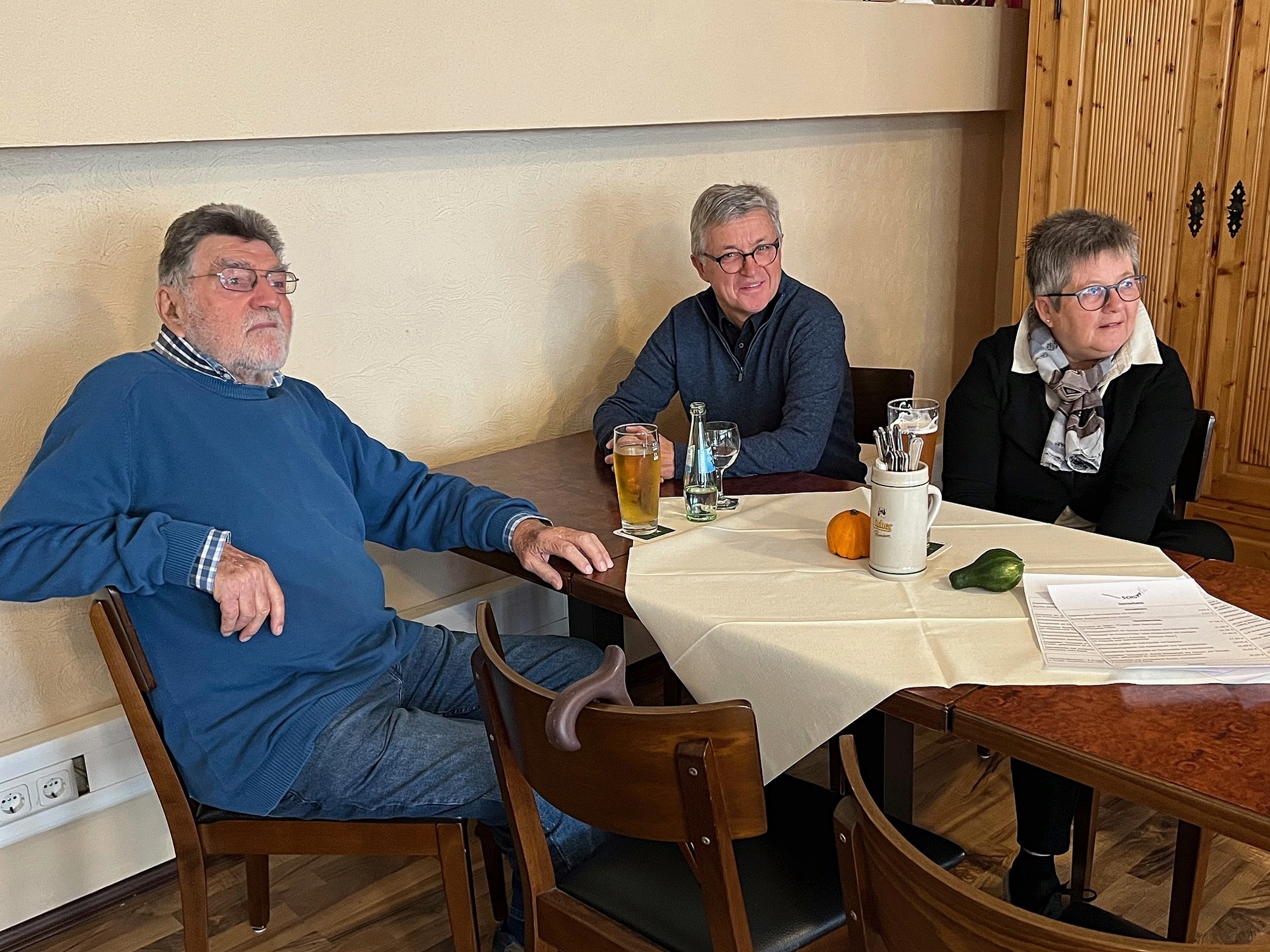 Bild 3: Der ehemalige Kommandeur Rudi Busch und er ehemalige 1. Vorsitzende Hans Werner Bender mit seiner Frau hören dem Bericht des Vorsitzenden aufmerksam zu.