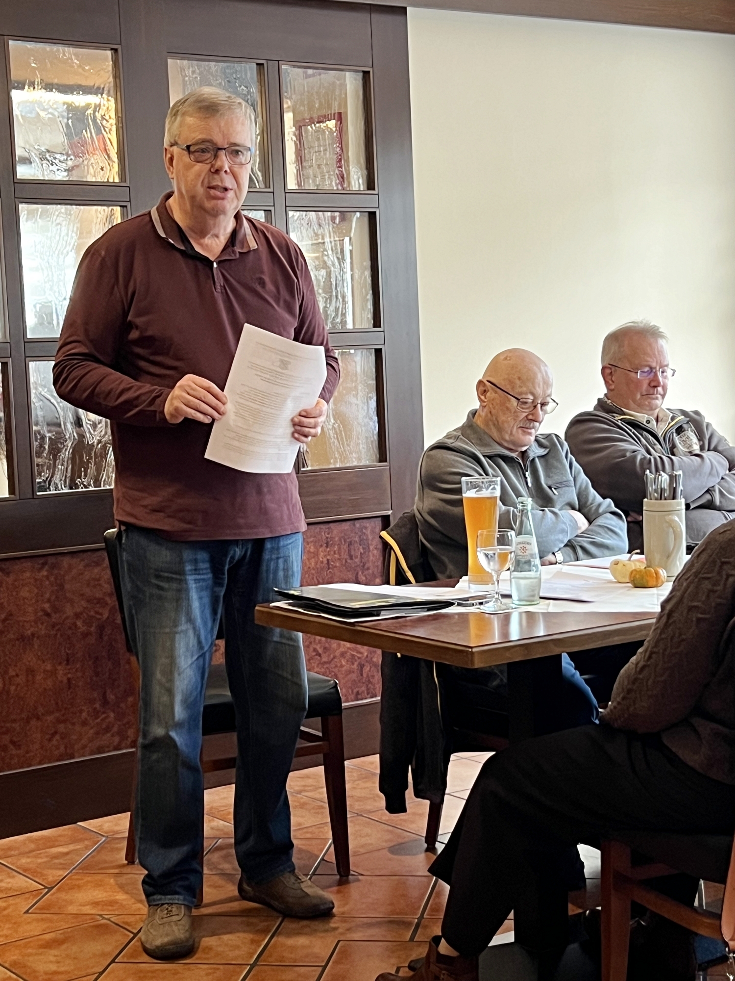 Bild 1+2: Der 1. Vorsitzende Ralf Otto trägt seinen Bericht über das Jahr 2025 vor.